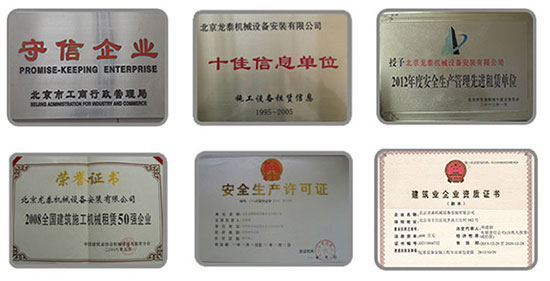 北京龍泰機械設備安裝有限公司始創于1996年,是具有20多年機械設備租賃、安裝、運輸的專業公司,具有起重設備安裝工程專業承包壹級資質。我公司先后被評為:北京市建筑起重機械租賃企業資信等級壹級單位、2012年度安全生產管理先進租賃單位、2012、2014年建筑機械租賃品牌單位、2012全國建筑施工機械租賃50強企業、2010-2011、2012-2013年度北京市建筑機械租賃企業設備管理優秀單位、北京市建筑機械優秀租賃企業。公司現擁有各種各類機械設備200余臺(輛),固定資產達到6000萬余元,其中塔式起重機、施工升降機200余臺,汽車起重機2臺,運輸板車5輛,年出租率95%以上,可以提供各種租賃、安裝、維修服務。